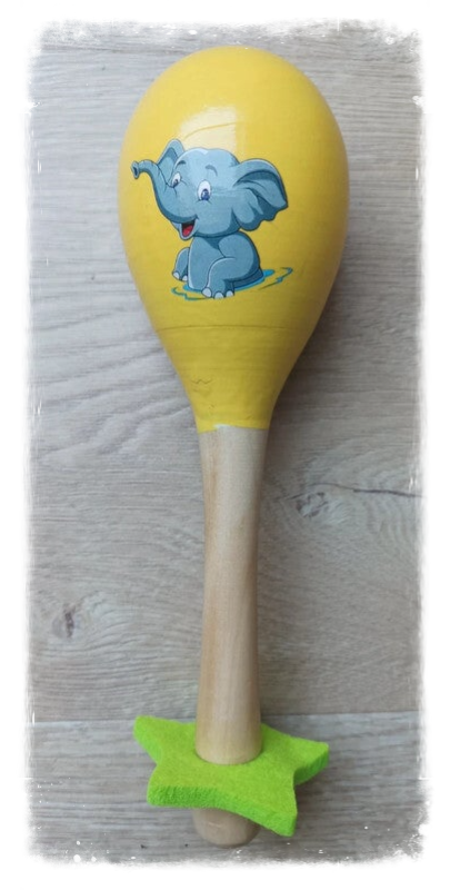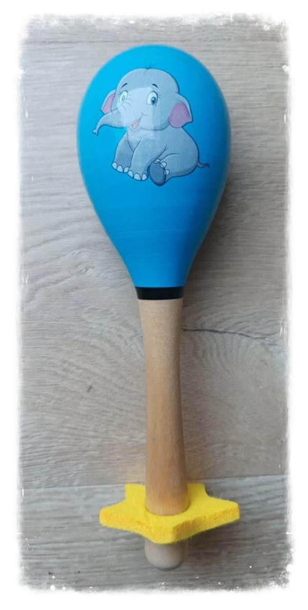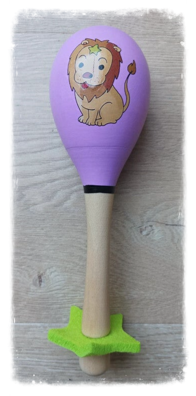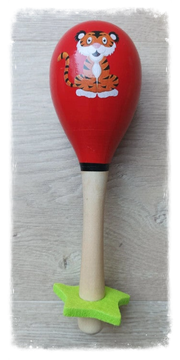 Jolie maracas en bois colorée sur le thème des animaux pour faire ses premiers pas dans le monde de la musique, les enfants vont l'adorer.