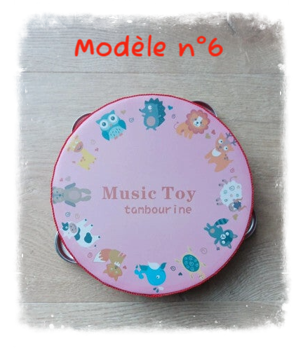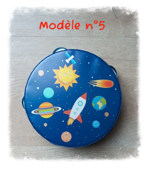 Joli tambourin illustré et coloré en bois.