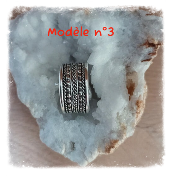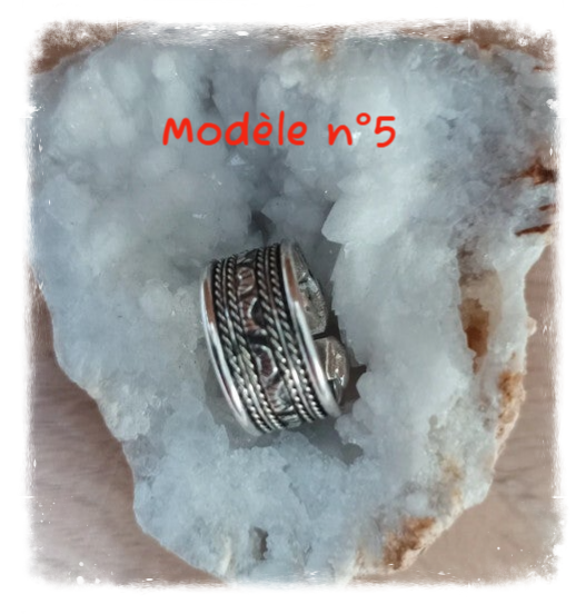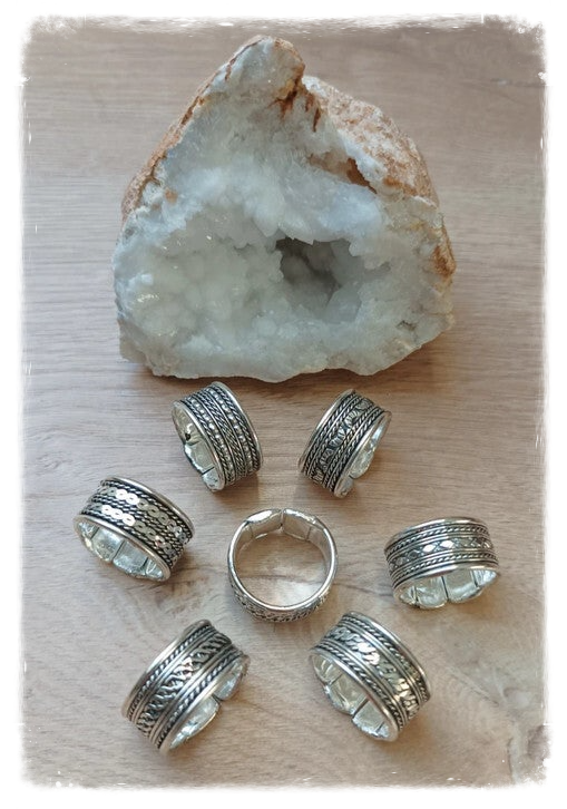 Bague en métal blanc ouverte donc réglable, épaisseur environ 1 cm.