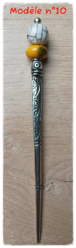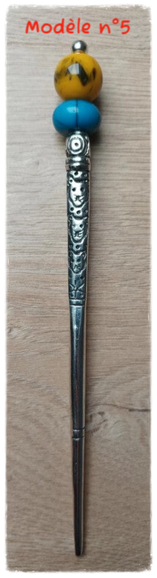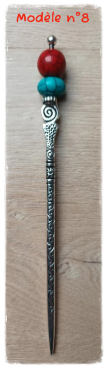 Très beau pique à cheveux en métal blanc décoration perle de couleur.