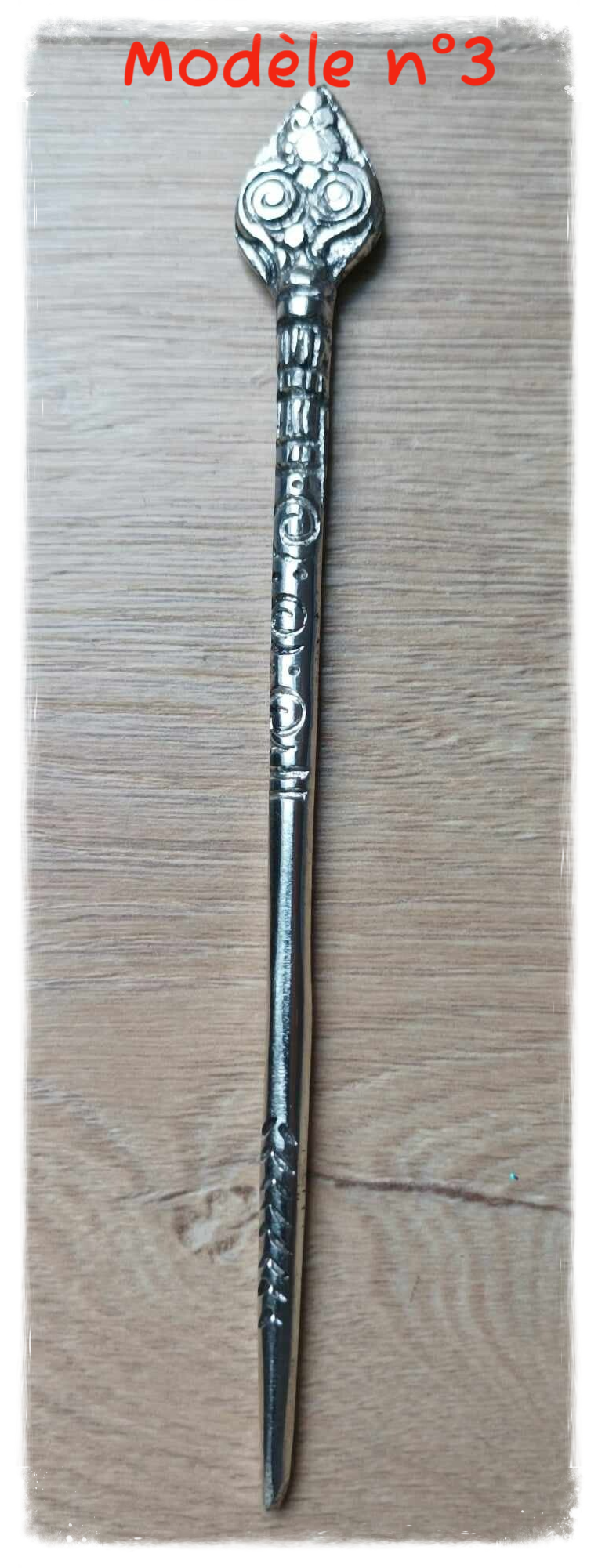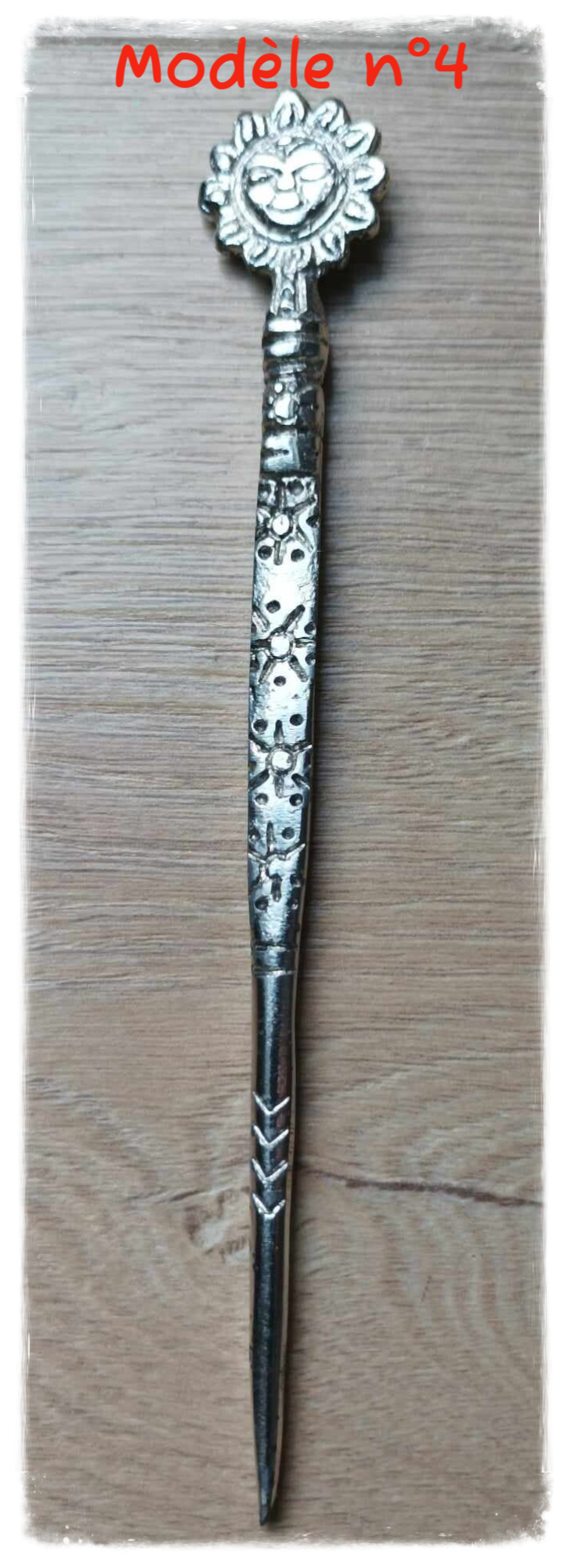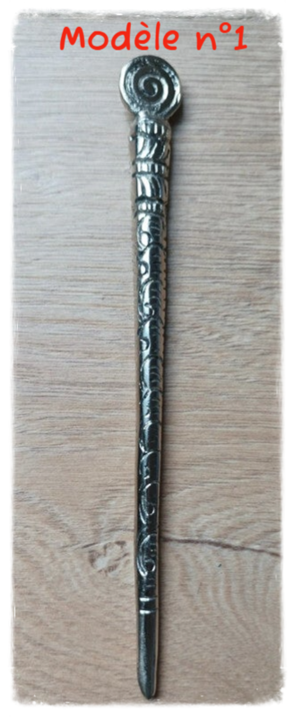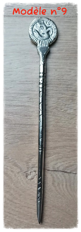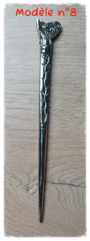 Joli pique à cheveux en métal avec motifs.
