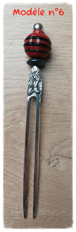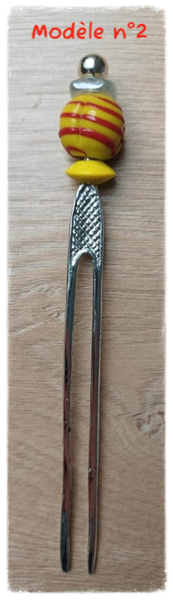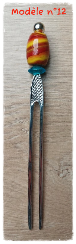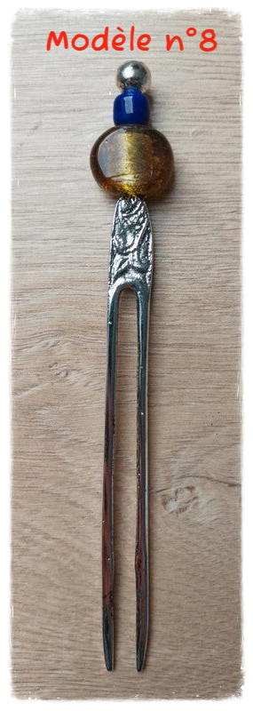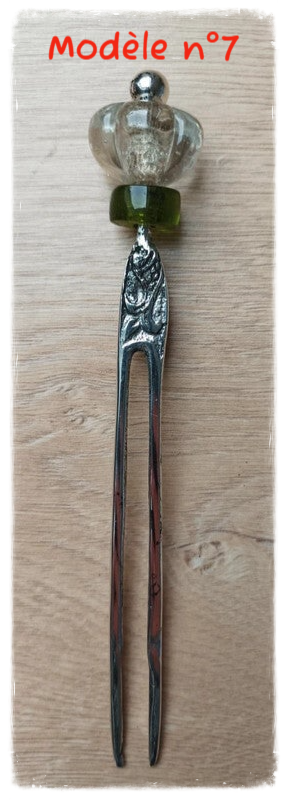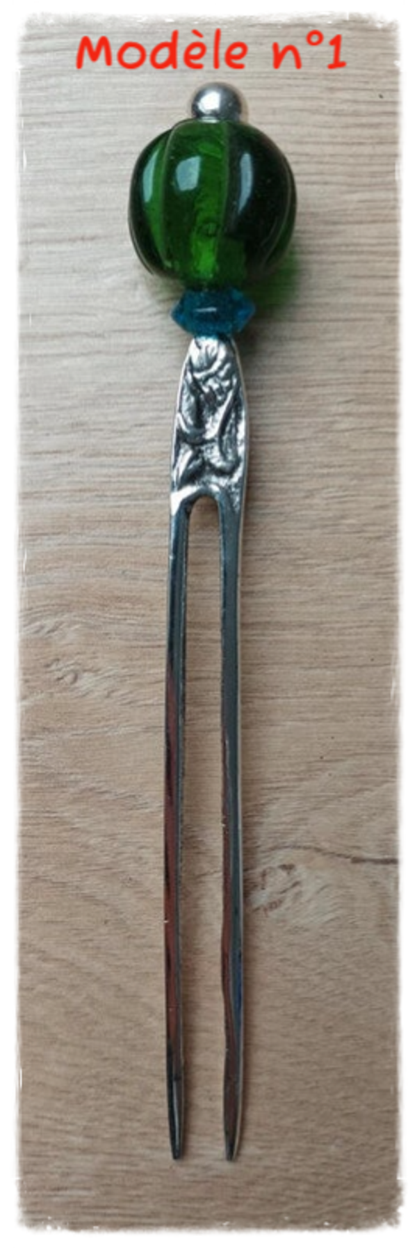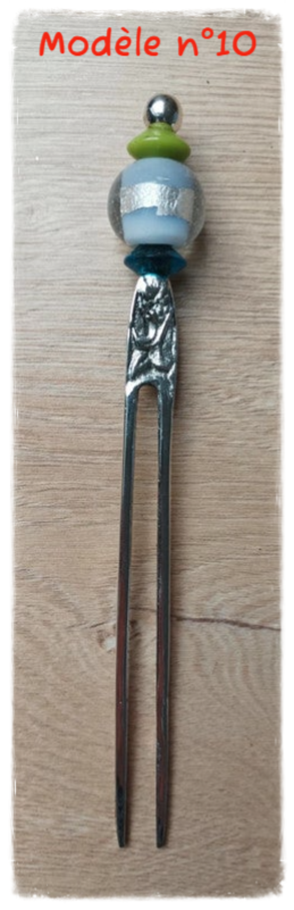 Très beau pique à cheveux double en métal blanc et verre façon Murano.