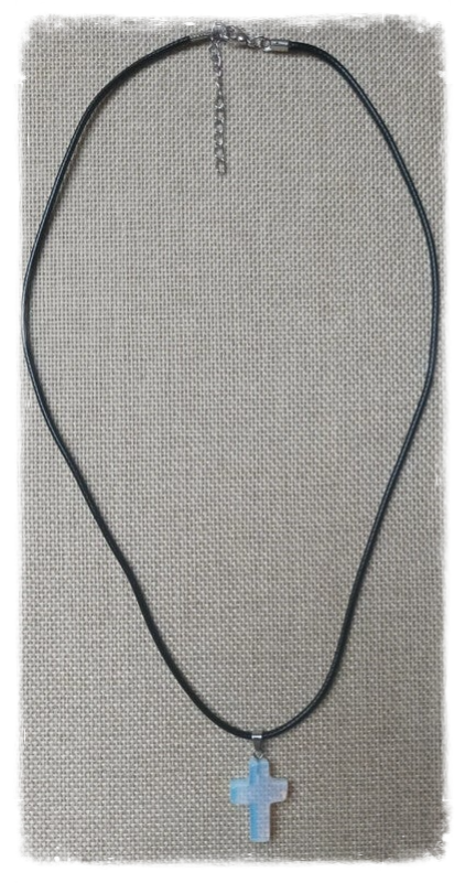 Joli pendentif en forme de croix et en opaline, une pierre connue pour ses vertus et bienfaits :