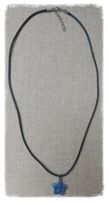 Joli pendentif en forme d'étoile et en sodalite, une pierre connue pour ses vertus et bienfaits :