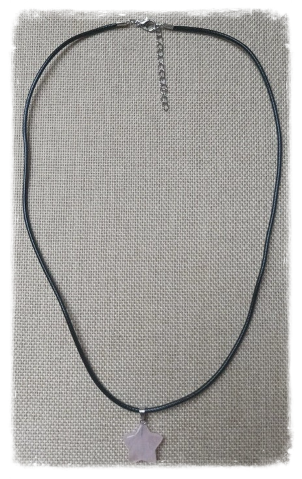 Joli pendentif en forme d'étoile et en quartz rose, une pierre connue pour ses vertus et bienfaits :