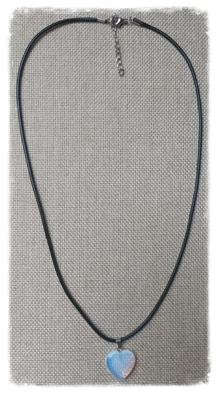 Joli pendentif en forme de coeur et en opaline, une pierre connue pour ses vertus et bienfaits :