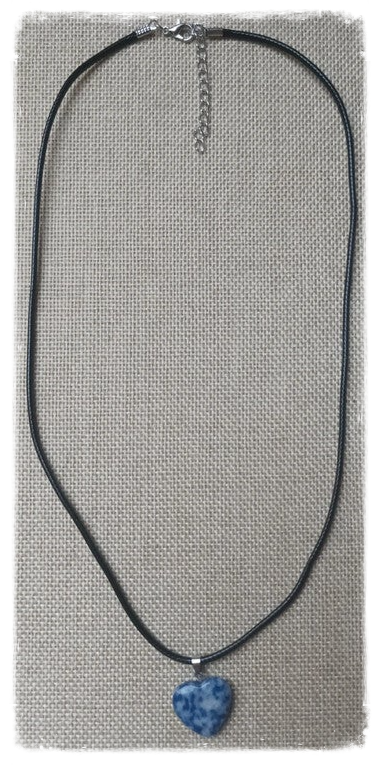 Joli pendentif en forme de coeur et en sodalite, une pierre connue pour ses vertus et bienfaits :