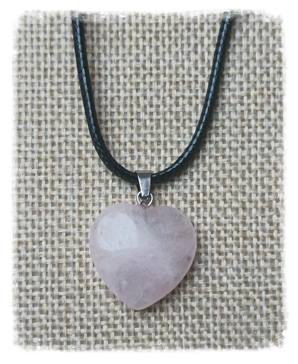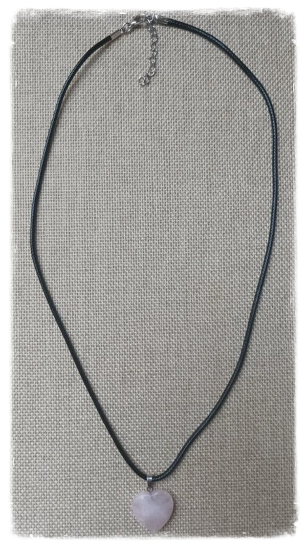 Joli pendentif en forme de coeur et en quartz rose, une pierre connue pour ses vertus et bienfaits :