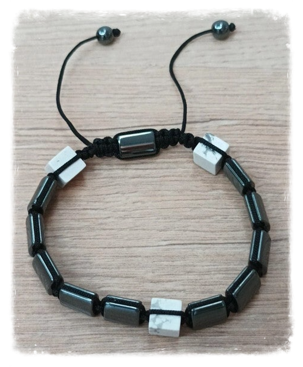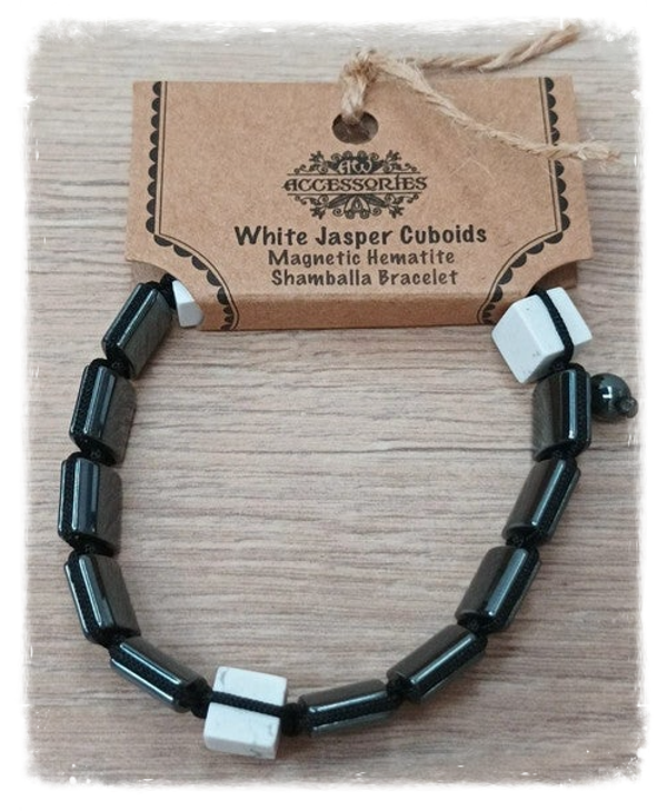 Bracelet Shamballa hématite magnétique avec cuboïdes jaspe blanc