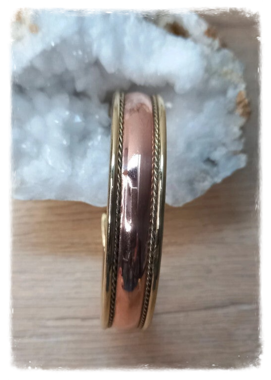 Bracelet en cuivre couleur cuivre et or, réglable.