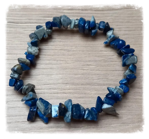 Elégant bracelet en éclats de pierres semi-précieuses, la sodalite bleue est une pierre qui a plusieurs vertus :