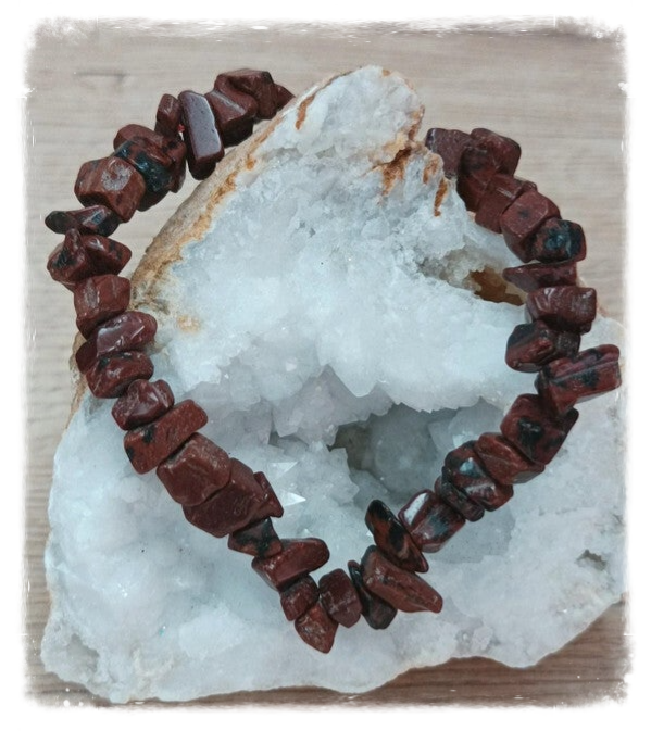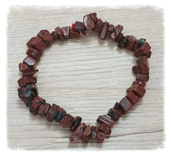 Elégant bracelet en éclats de pierres semi-précieuses, l'obsidienne acajou possède plusieurs vertus en lithothérapie: