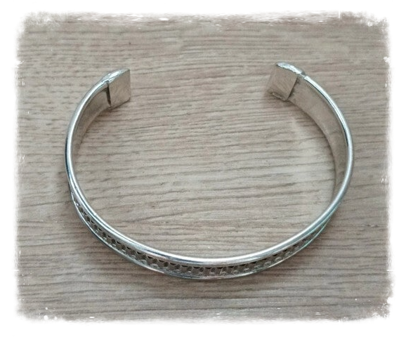 Joli bracelet en métal blanc ajustable.