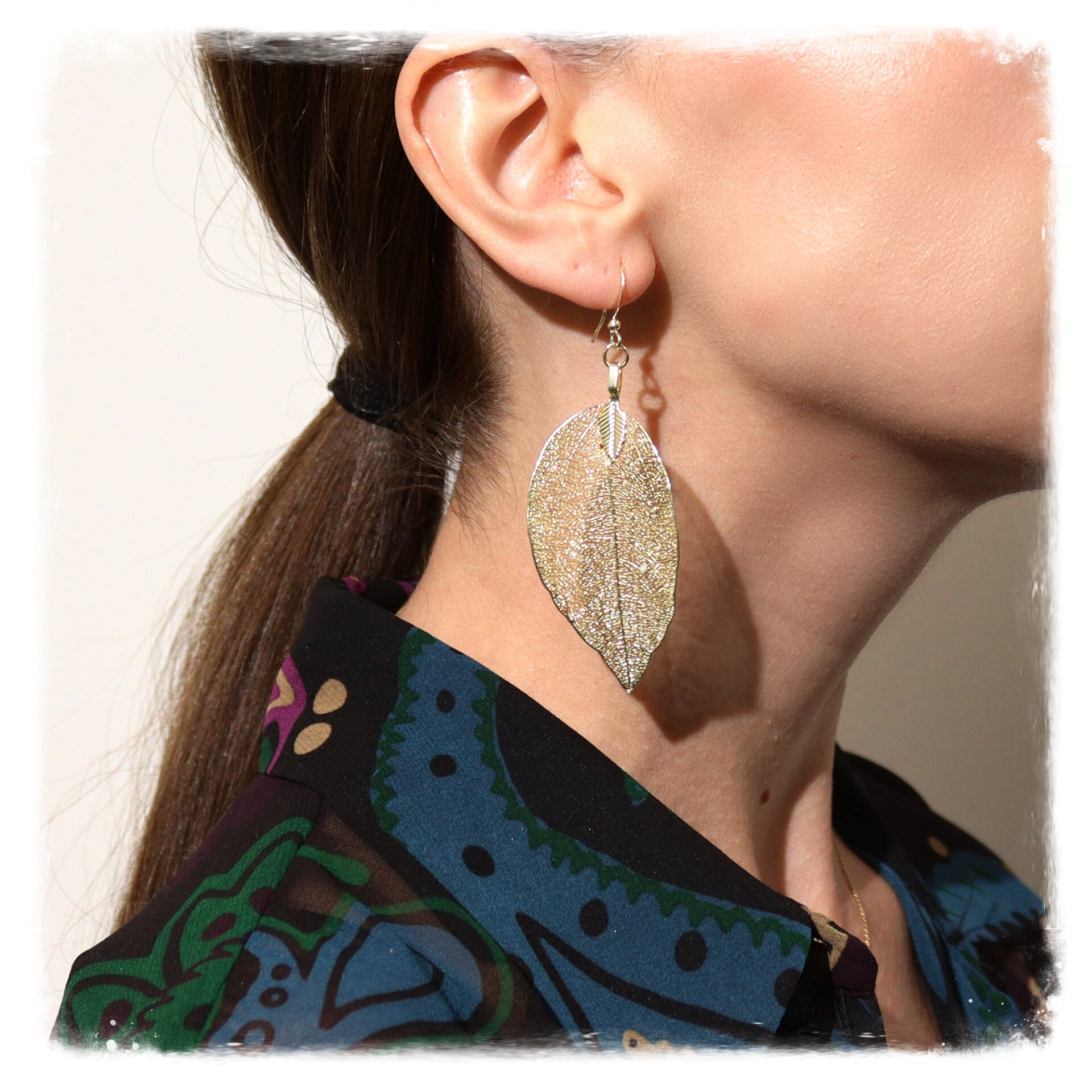 Très belles boucles d'oreilles réalisées à partir de vraies feuilles, soigneusement sélectionnées à la main et cueillies feuille par feuille pour leur qualité et leur forme.