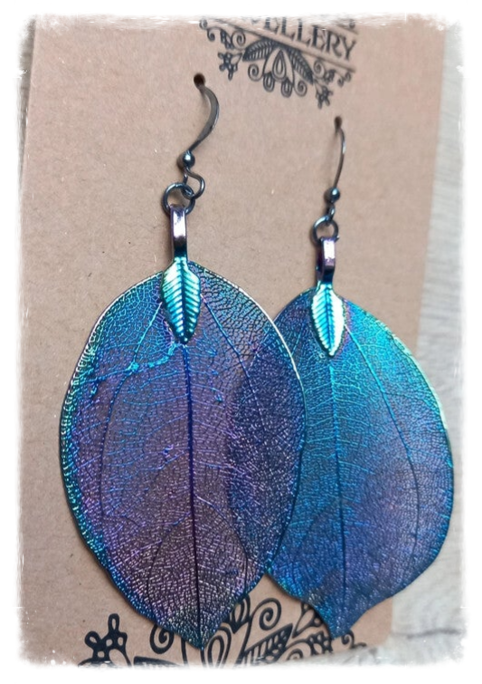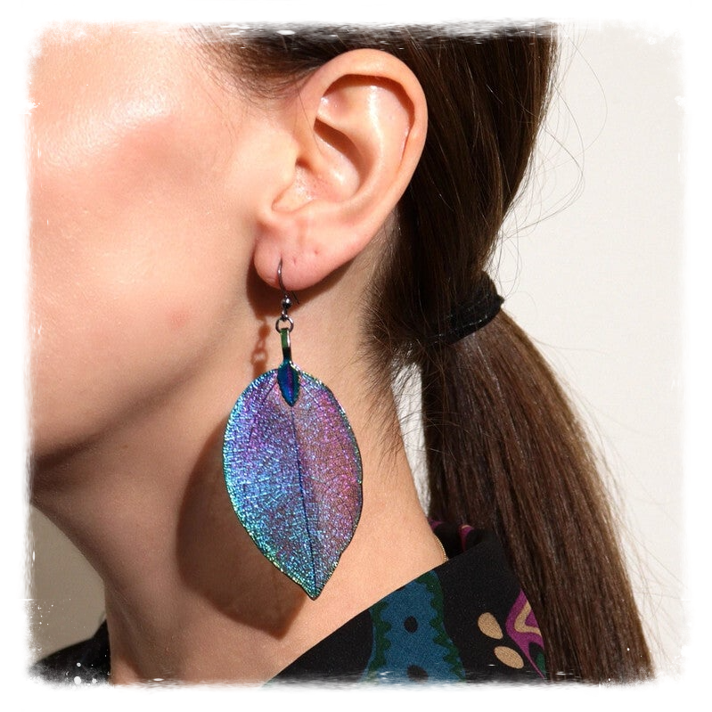 Très belles boucles d'oreilles réalisées à partir de vraies feuilles, soigneusement sélectionnées à la main et cueillies feuille par feuille pour leur qualité et leur forme.
