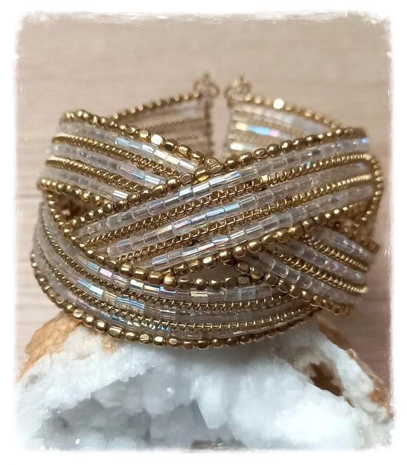 Très joli bracelet en perles et métal ouvert pour s'ajuster au type de poignet.