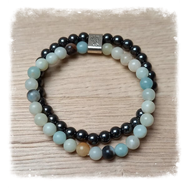 Bracelet Magnétique pierres naturelles - Amazonite et Hématite