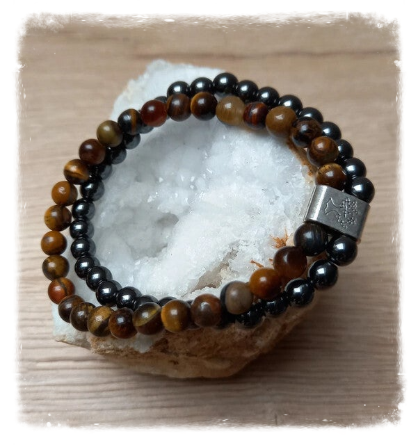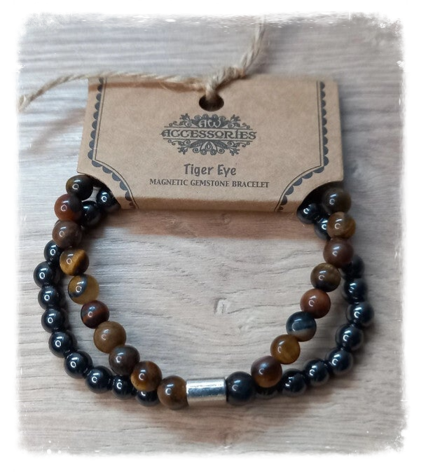 Bracelet Magnétique pierres naturelles - Oeil de tigre et Hématite