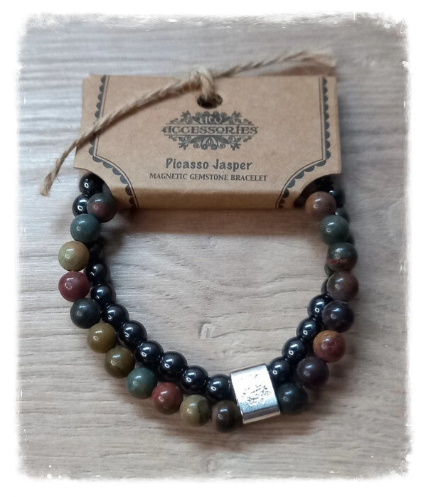 Bracelet Magnétique pierres naturelles - Jaspe Picasso et Hématite