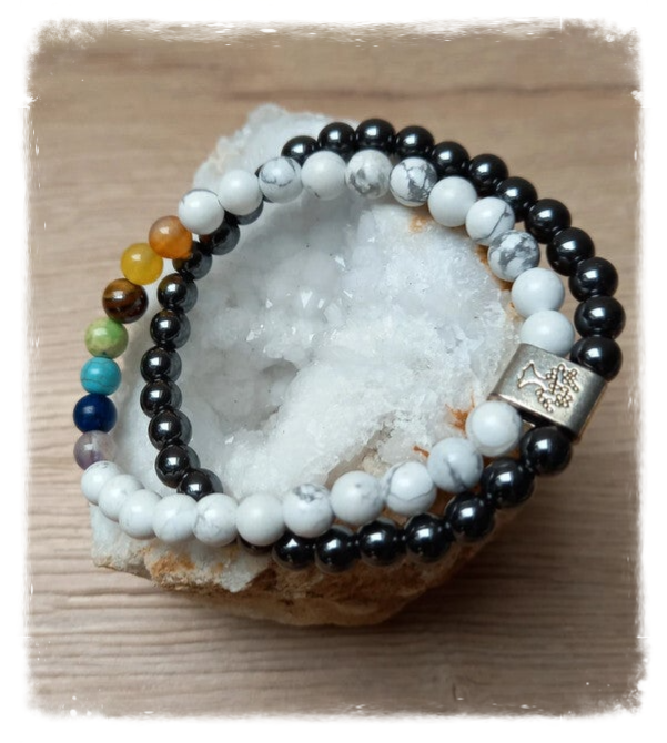 Bracelet Magnétique - Howlite Blanche Chackra et Hématite