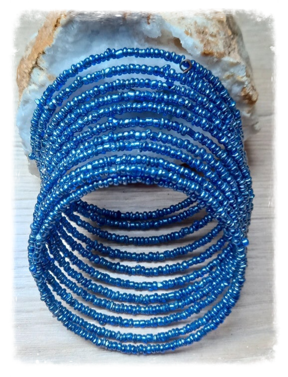 Bracelet spirale Perles de rocailles - Bleu foncé nacré