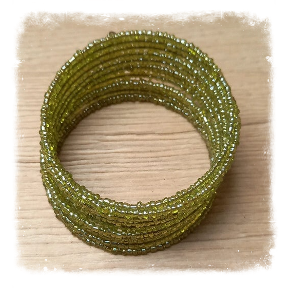 Joli bracelet spirale avec de fines perles de rocaille de couleur unie.