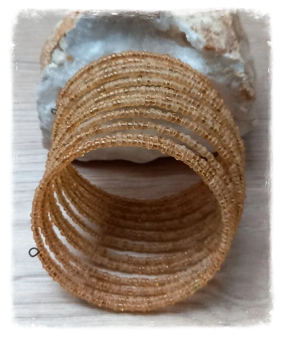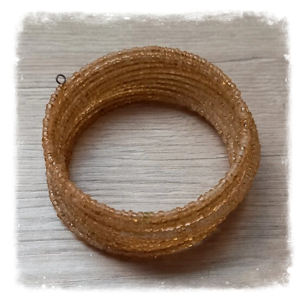 Joli bracelet spirale avec de fines perles de rocaille de couleur unie.