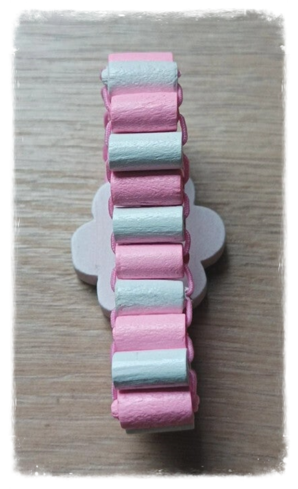 Joli bracelet montre élastique pour enfant en bois.