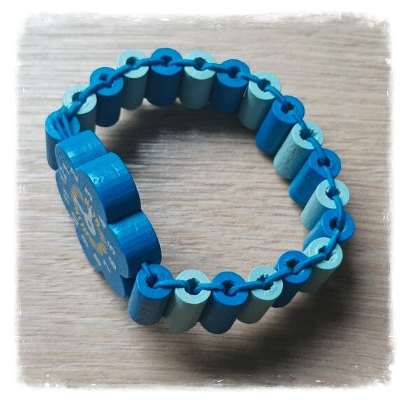 Joli bracelet montre élastique pour enfant en bois.