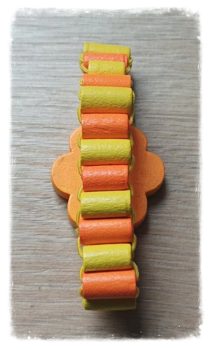 Bracelet élastique montre en bois - Orange/jaune