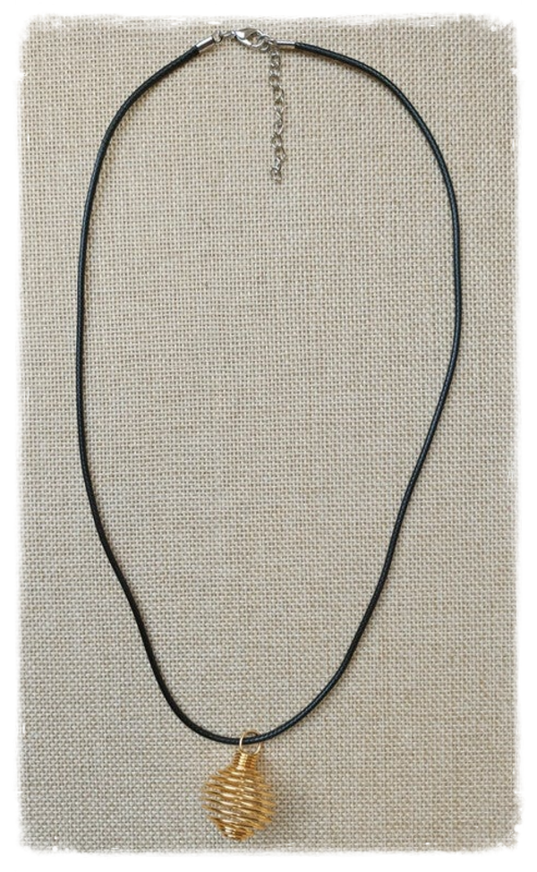 Ce pendentif spirale cage est fabriqué avec un unique fil métallique argenté, il est flexible comme un ressort.