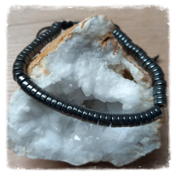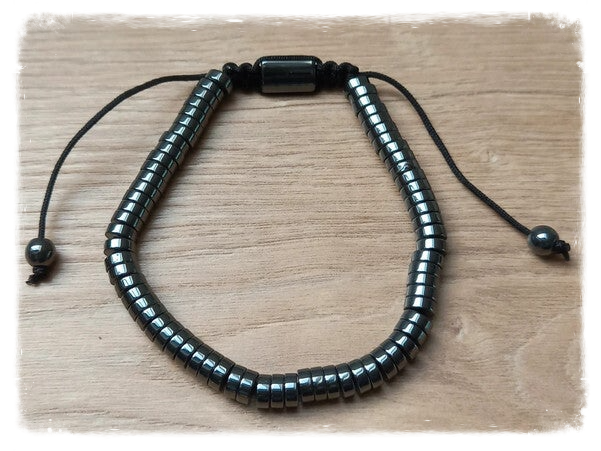 Ce bracelet est fabriqué à partir de petites perles d'hématite, un minéral naturellement magnétique.