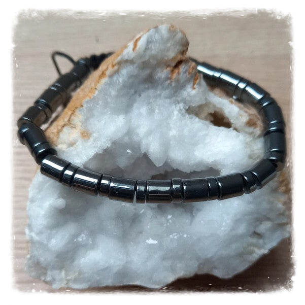 Ce bracelet est fabriqué à partir de petites perles d'hématite, un minéral naturellement magnétique.