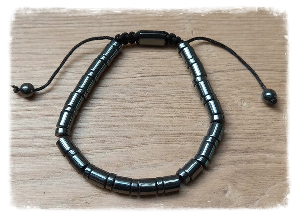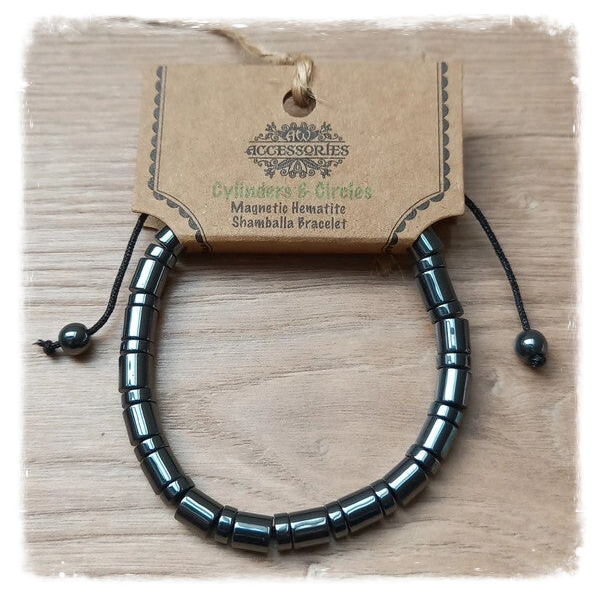Bracelet Shamballa hématite magnétique cylindres et cercles
