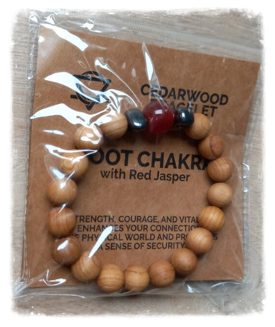 Bracelet de Chakra Racine en Cèdre avec Jaspe Rouge