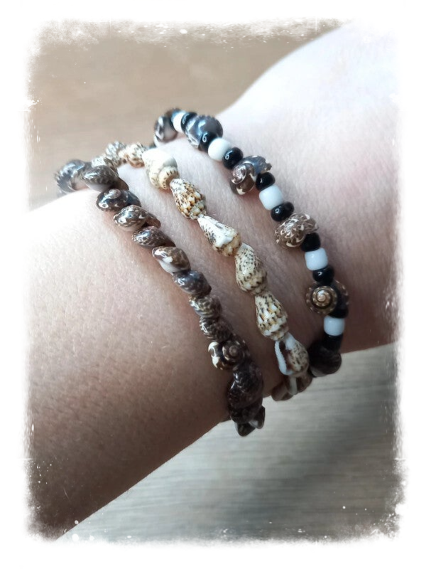 Très joli petit bracelet élastique fait main avec de petits coquillages.