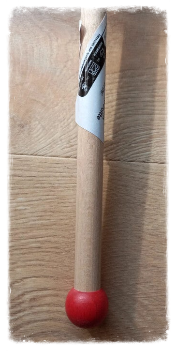 La baguette est en hêtre, le manche en charme et la protection en plastique effet jaspée.