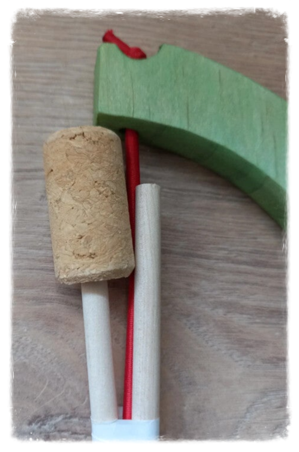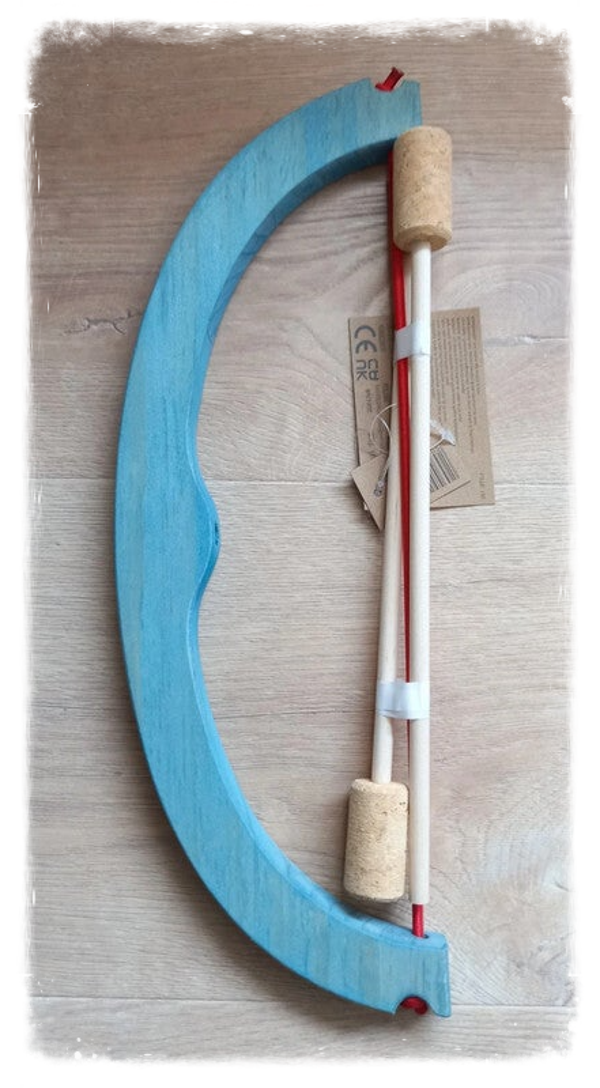 Arc en bois avec 2 flèches 2 flèches avec bouchon en liège pour un maximum de sécurité.