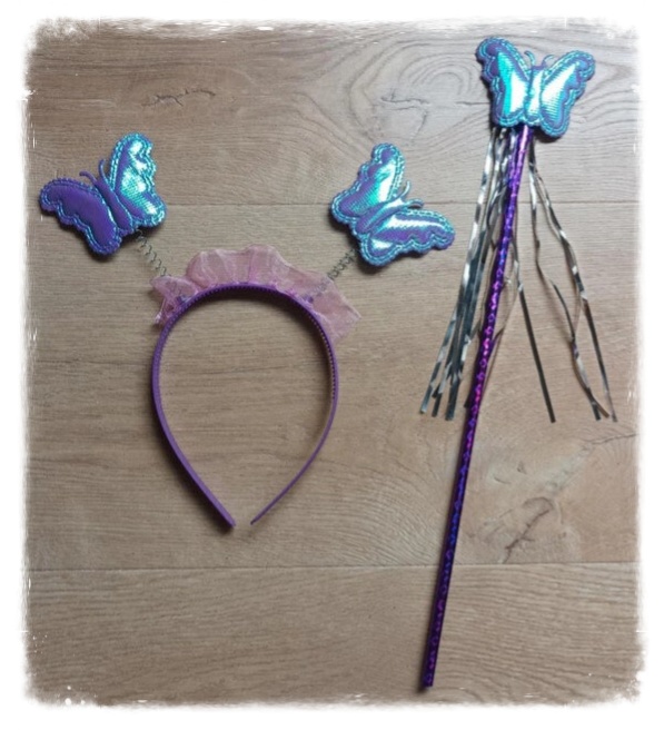 Ensemble ailes de papillon avec élastiques tour de bras + baguette et serre-tête.