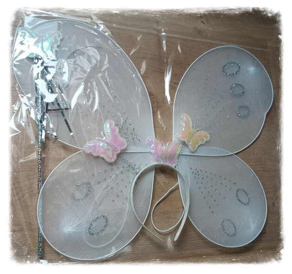 Ailes de papillon avec baguette et serre-tête - Blanches