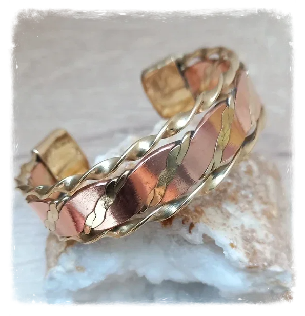 Très joli bracelet en cuivre et doré torsadés large réglable.