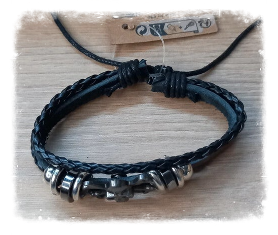 Ce bracelet pour homme est fabriqué à partir de cuir et de motif en métal.