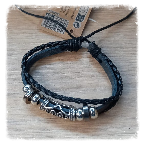 Ce bracelet pour homme est fabriqué à partir de cuir et de motif en métal.
