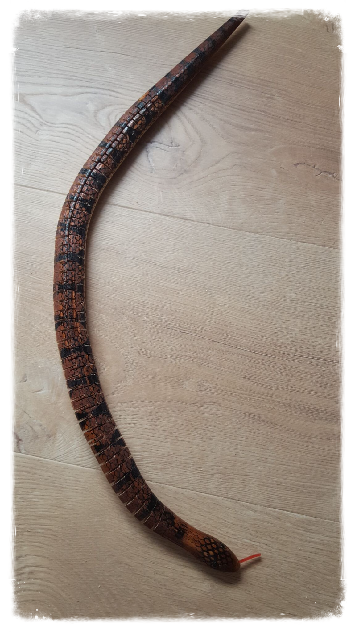 Faites peur à vos amis avec ce serpent très réaliste en bois.