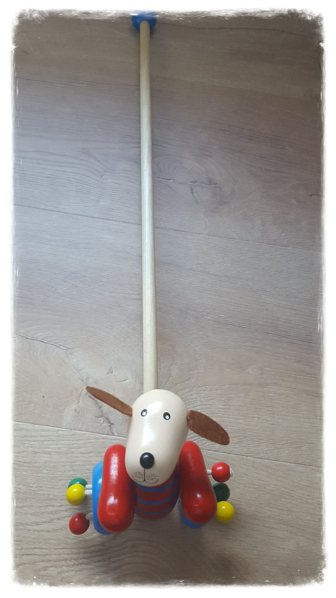 Le manche se dévisse pour ainsi facilité le rangement et l'enfant à également la possiblité de ne jouer qu'avec l'animal en le faisant rouler manuellement.