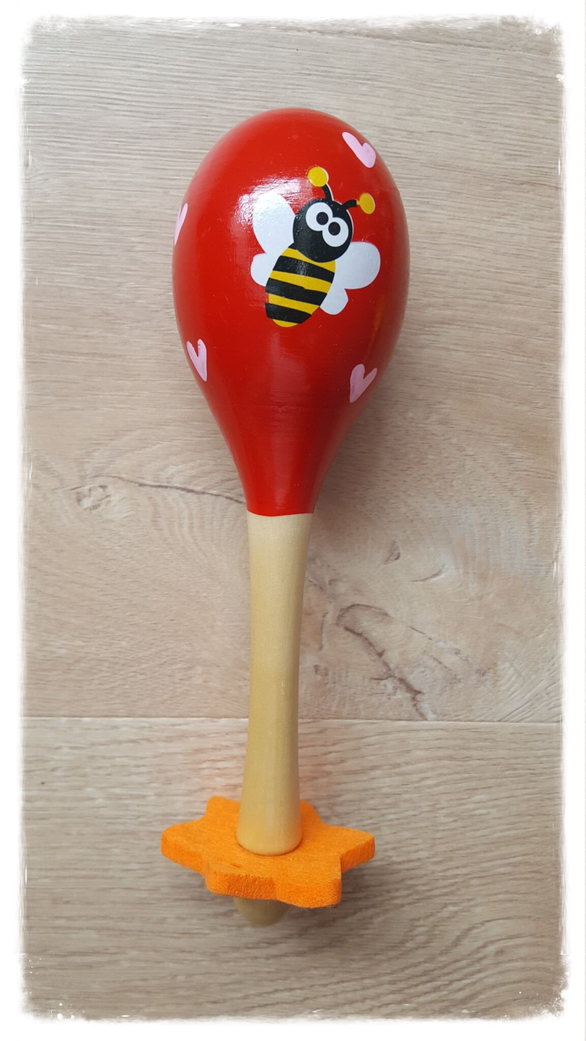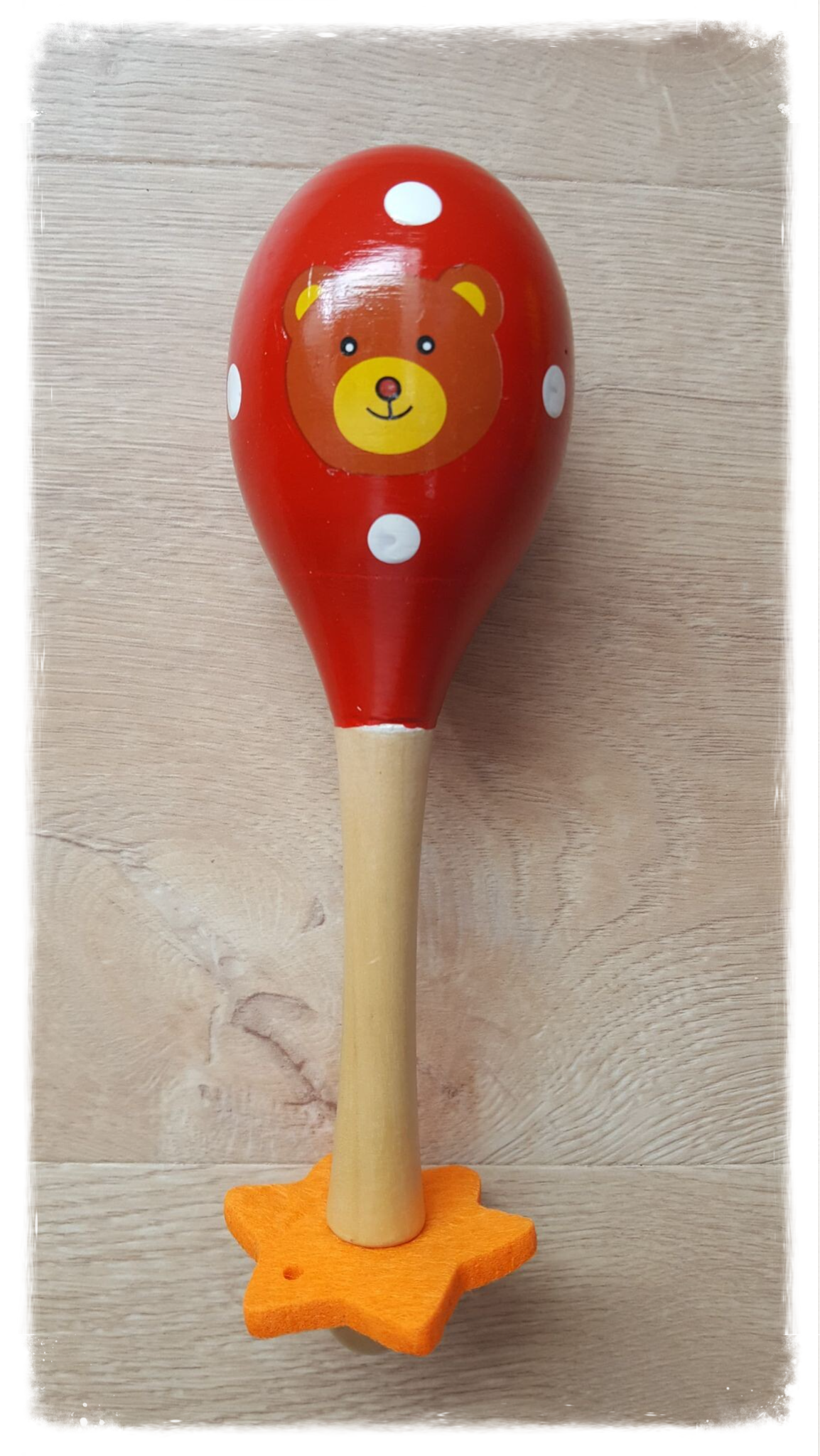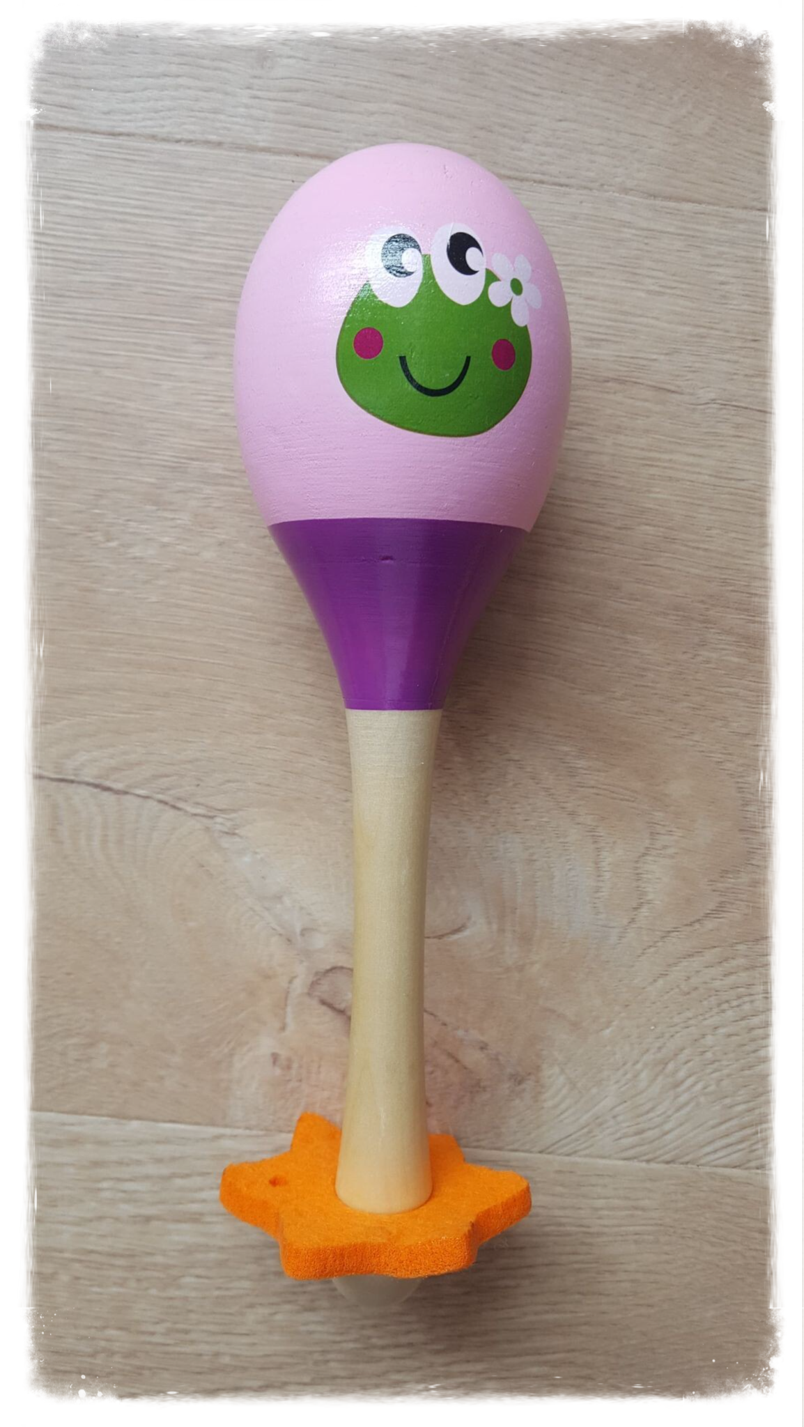 Jolie maracas en bois colorée sur le thème des animaux pour faire ses premiers pas dans le monde de la musique, les enfants vont l'adorer.