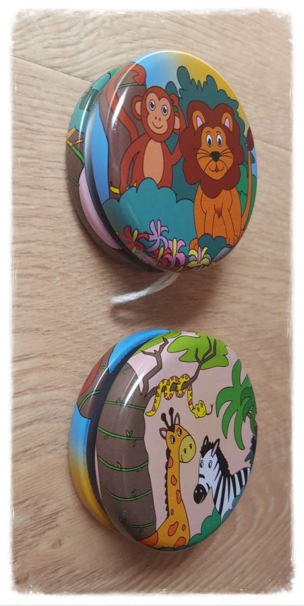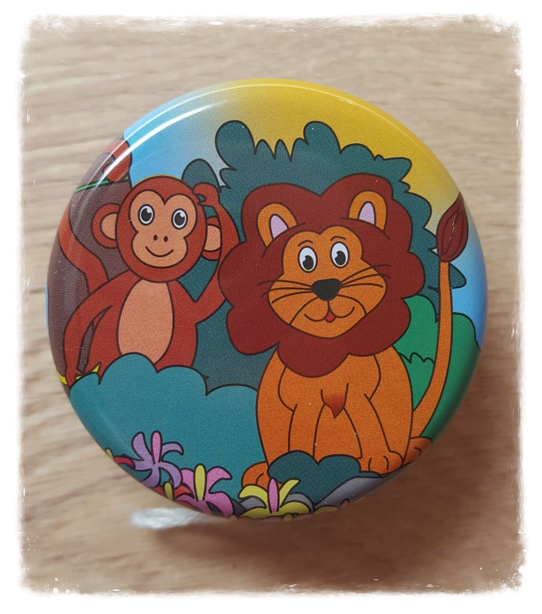 Yoyo métal thème jungle de 5,2 cm de diamètre.