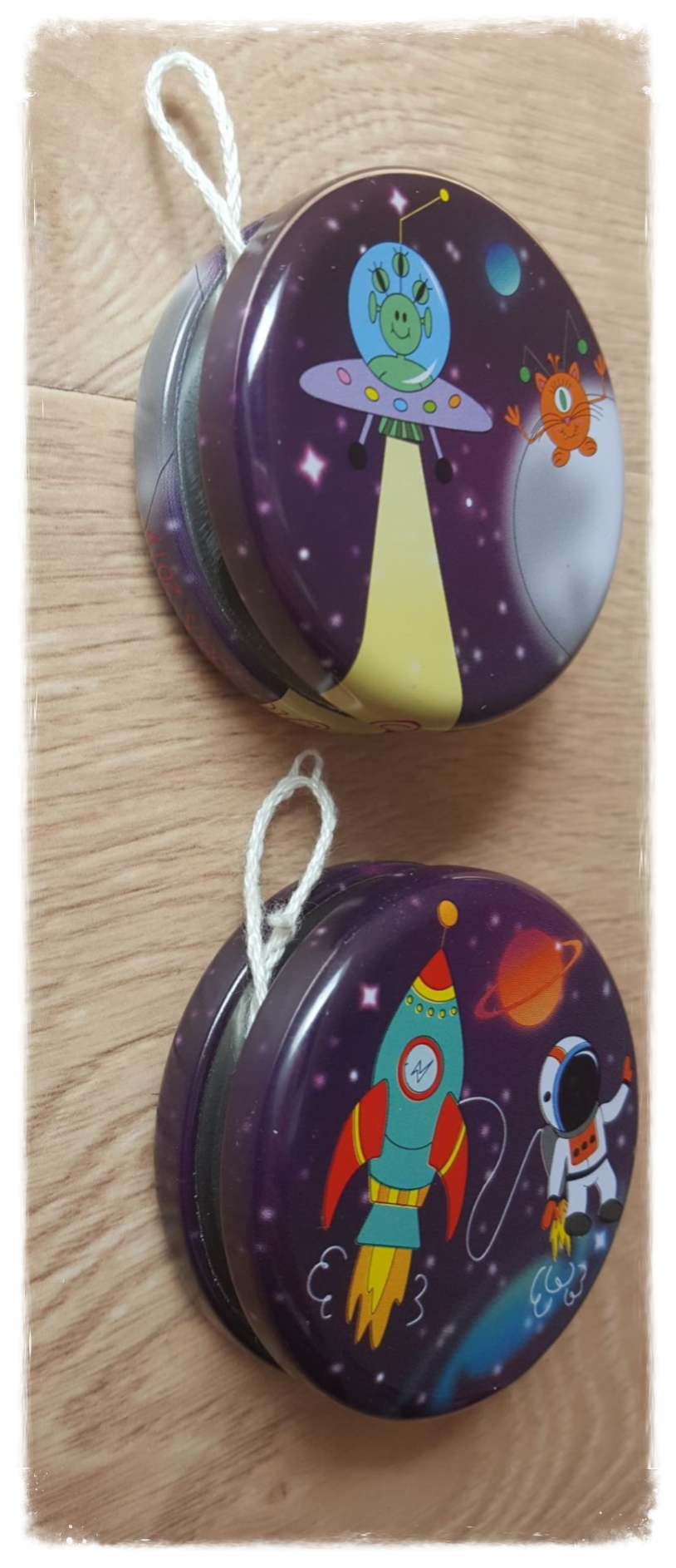 Yoyo métal thème espace de 5,2 cm de diamètre.