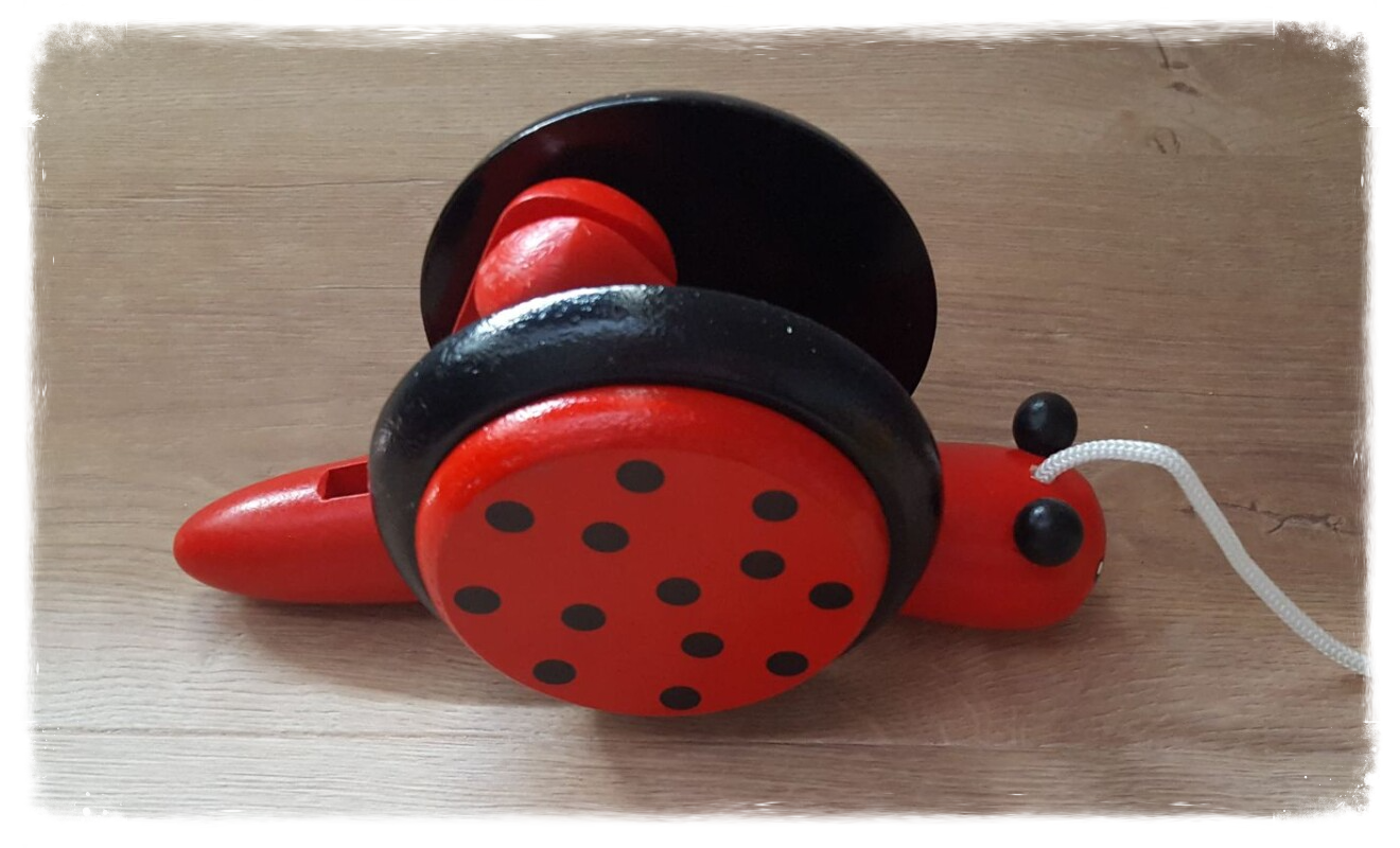 Un joli petit animal en bois à tirer.