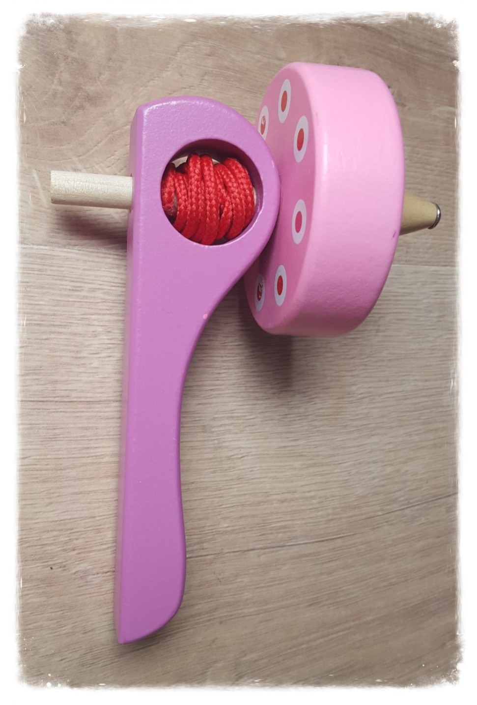 Cette jolie toupie en bois avec poignée émerveillera les petits comme les grands avec ses mouvements circulaires rapides et contenus.